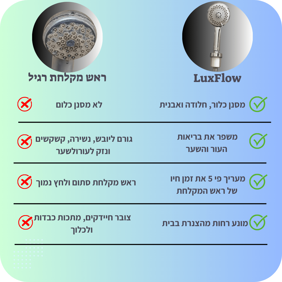 LuxFlow פילטר מקלחת למים נקיים ובריאים